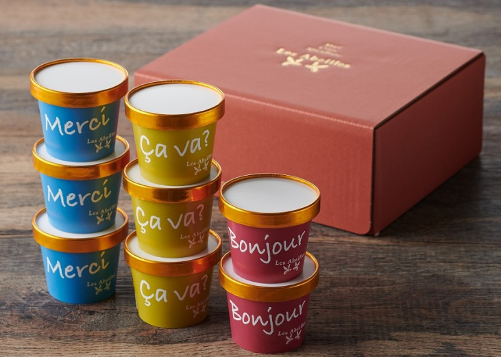 アイスクリームの味ごとに 『Bonjour』『Ça va ?』『Merci』 ?」 の3つの違った挨拶が正面にありまして、裏面にはフランス語のことわざもコッソリと添えてあります。