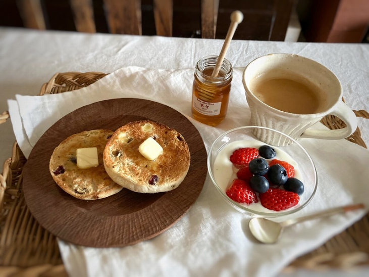 こんがり焼いたパンにバターとたっぷりのミエル フランボワジエは、朝からテンションが上がる幸せな美味しさです♡