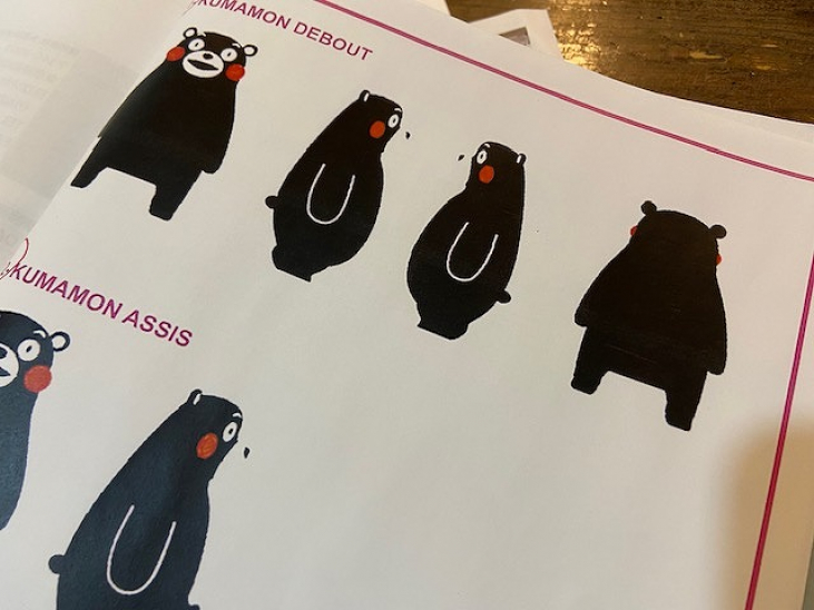 (例)左の座っている「くまモン」の形状であれば安定します。