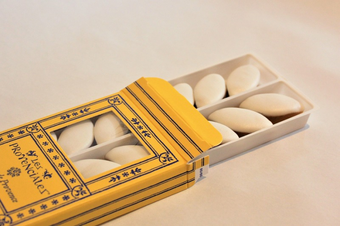 黄色い鮮やかなパッケージは太陽を思わせるプロヴァンス色。カリソンの中でも、一口で食べやすいミニサイズのものをご用意しました。プロヴァンスの味をお愉しみください。