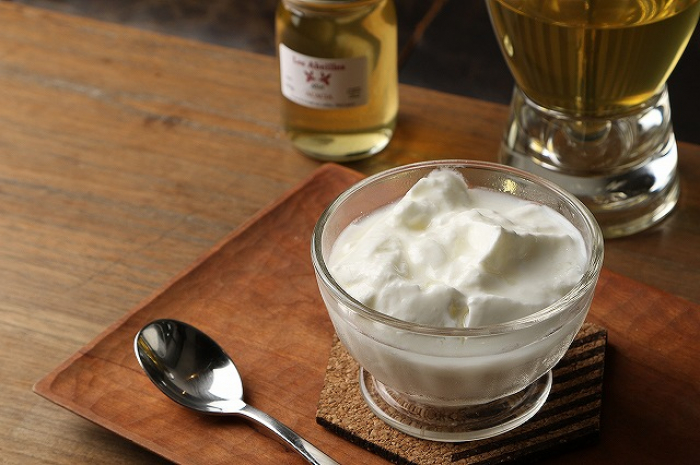 パリの朝市に並ぶ自然な味を再現。自然豊かな信州の土地で、前日の夕方~朝に搾られた生乳100%のレザベイユ南青山オリジナルヨーグルト。