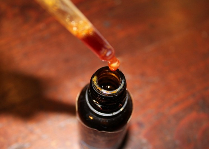 スポイドで1回に吸い上げられる量が、大体10滴くらいです。例えば、1日あたり30滴を1回で。または、10滴ずつを3回に分けて摂って頂いても良いです。一日の量については、ご自身の身体の調子によって90滴までの範囲で調整ください。スポイドで吸い上げる量(プッシュ回数)を目安にされると良いでしょう。