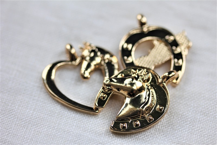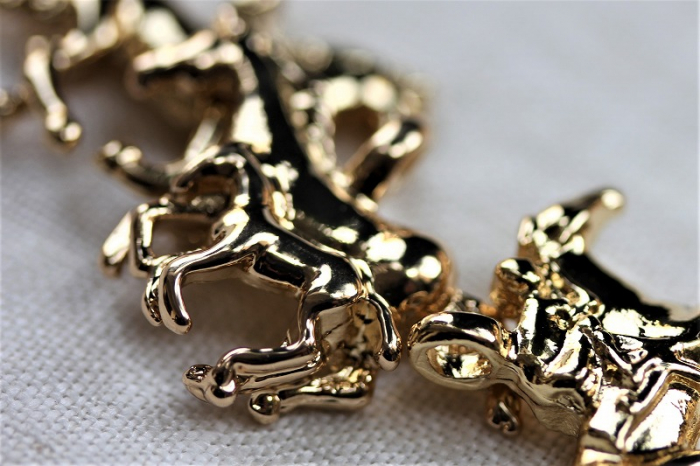 西洋において馬の蹄鉄は、幸運をもたらすモチーフとも考えられてきました。どれもペンダントになるチャーム付き。ぜひ、ネックレスとして身に着けていただきたい金色の豪華フェーヴ。
