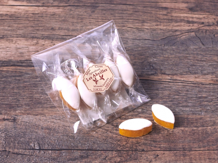 愛らしく印象的なひし形(舟形)も特徴のひとつ。表面の白く艶やかな部分は砂糖かけ。プロヴァンス名産のアーモンドと果物の砂糖漬け(メロンとオレンジ)から作られる黄色味がかった香り高い生地は、しっとり柔らか。プロヴァンスならではの原材料からなる逸品は上品な甘さをしています。