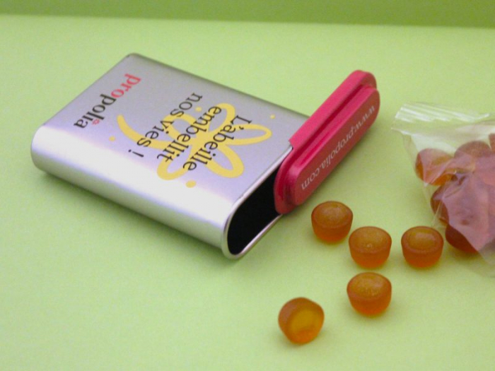 フランスらしい香り Anis アニス(植物)配合のプロポリスのキャンディー(ハードグミ)です。プロポリス商品の中でも、こちらは「有機農法保証商品」表示付きの商品。可愛らしい携帯用缶ケースがセットになっています。