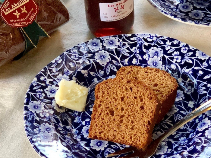 当店のスペシャリテ【ガレット・デ・ロワ・オ・ミエル】<フランボワジエ(木苺の花)のはちみつ使用>(限定数)】の他に生地や製法の違うものもご用意。【Pain d'épices パンデピス】は、新商品【パン・デピス・オランジェ(オレンジのコンフィ入)】を比較しながら、食べ方も色々ご紹介します。