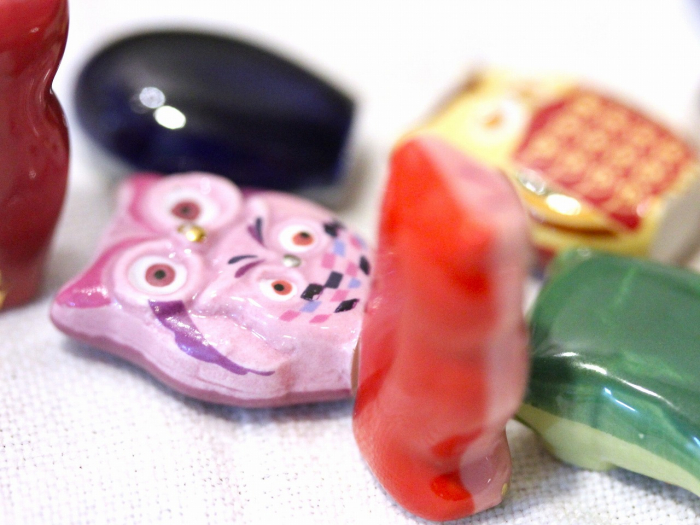 ヨーロッパでは森の賢者とされるフクロウ。くちばしや足のゴールド色が、鮮やかな羽色の中に際立つデザイン。美しいアート作品のような華やかさが魅力。プレート型。