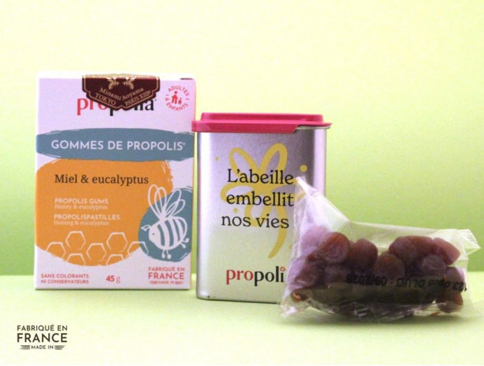 GOMMES DE PROPOLIS avec boite プロポリス ハードグミ(ソフトキャンディー)<ハチミツ&ユーカリ> &ケースセット ( Propolia プロポリア)