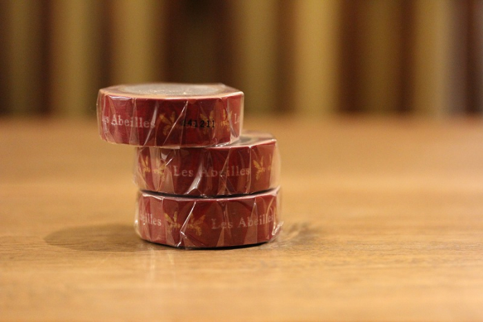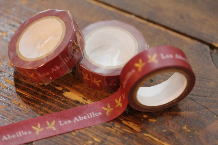2025年1月より店舗「レザベイユ南青山」で使い初めた新アイテム。「Les Abeilles」 と「ブランドマーク(2匹の向き合った蜜蜂)」を印字したオリジナルデザインのマスキングテープです。ご愛用していただけたら嬉しいです。